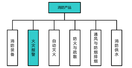 ?消防產(chǎn)業(yè)屬于保障性安全產(chǎn)業(yè),事關(guān)公共安全。消防安全事業(yè)的發(fā)展,是衡量一個(gè)國家和城市現(xiàn)代文明程度的標(biāo)志之一,對于國家的長治久安和促進(jìn)社會(huì)進(jìn)步具有重要意義。消防行業(yè)主要分為消防工程和消防產(chǎn)品兩個(gè)子行業(yè)。消防工程強(qiáng)調(diào)對消防設(shè)施、裝備和系統(tǒng)的設(shè)計(jì)、建造、施工和安裝等,而消防產(chǎn)品又可細(xì)分成消防裝備、火災(zāi)報(bào)警、自動(dòng)滅火、防火與疏散、通用與防煙排煙、消防供水等6大類,具體情況如下圖所示: