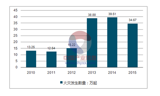 2010-2015年我國火災(zāi)發(fā)生數(shù)量情況