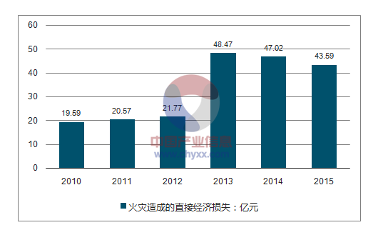 2010-2015年我國火災(zāi)造成直接經(jīng)濟(jì)損失情況